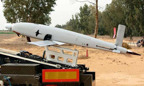 | БПЛА, применяемые против ЗРК и ЗРПК системы ПВОHermes 450   БПЛА Hermes 450 многоцелевой разведывательный БПЛА израильского производства, предназначенный для ведения наблюдения, патрулирования с воздуха, разведки и поддержки коммуникаций в полевых условиях, кроме того, он может нести ракеты «воздух-земля». БПЛА, как правило, оборудуется ОЭС видовой разведки Elbit Compass под фюзеляжем, но БПЛА также может нести и РЛС с синтезированной апертурой, РЛС для морского патрулирования и плюс системы оптико-электронной и радиотехнической разведки и подавления средств связи. Максимальная скорость полета – 176 км/ч; крейсерская скорость – 130 км/ч. Радиус действия – 200 км. Практический потолок – 6,1 км. Продолжительность полёта – 14 ч. Sky Striker   Sky Striker – барражирующий «БПЛА-камикадзе», производимый израильской компанией Elbit Systems. Аппарат сочетает в себе возможности разведывательного БПЛА и ударного боеприпаса, удаленно управляется оператором и может находиться в воздухе до 2 ч. Масса Sky Striker составляет 35 кг, из которых от 5 до 10 кг приходится на боеголовку (ее тип может изменяться в зависимости от специфики боевой задачи). Максимальная скорость полета может достигать 185 км/ч, а при пикировании на цель – до 500 км/ч. Оператор БПЛА может прервать атаку и повторить ее на известные, или вновь обнаруженные цели. На любом этапе полета «БПЛА-камикадзе» можно вернуть к месту старта и посадить с использованием парашюта и амортизирующего надувного мешка. На рисунке барражирующий боеприпас Sky Striker на пусковой установке Harop   Harop – израильский разведывательно-ударный БПЛА. В состав оборудования БПЛА Harop входит двухканальная оптико-электронная система ОЭС (ТВ и ИК каналы), система радиотехнической разведки (РТР), а также РЛС небольшой мощности. Таким образом, БПЛА Harop может выполнять не только ударные, но и разведывательные задачи. Особенностью этого БПЛА является то, что при обнаружении цели оператор может дать команду на поражение этой цели, т.е. БПЛА Harop может применяться как «БПЛА-камикадзе». Одной из задач основных задач этого БПЛА является борьба с комплексами ПВО противника. Максимальная скорость полета – 417 км/ч; крейсерская скорость – 185 км/ч. Радиус действия – 200 км. Практический потолок – 3 км. Продолжительность полёта – 6-9 ч. Aerostar